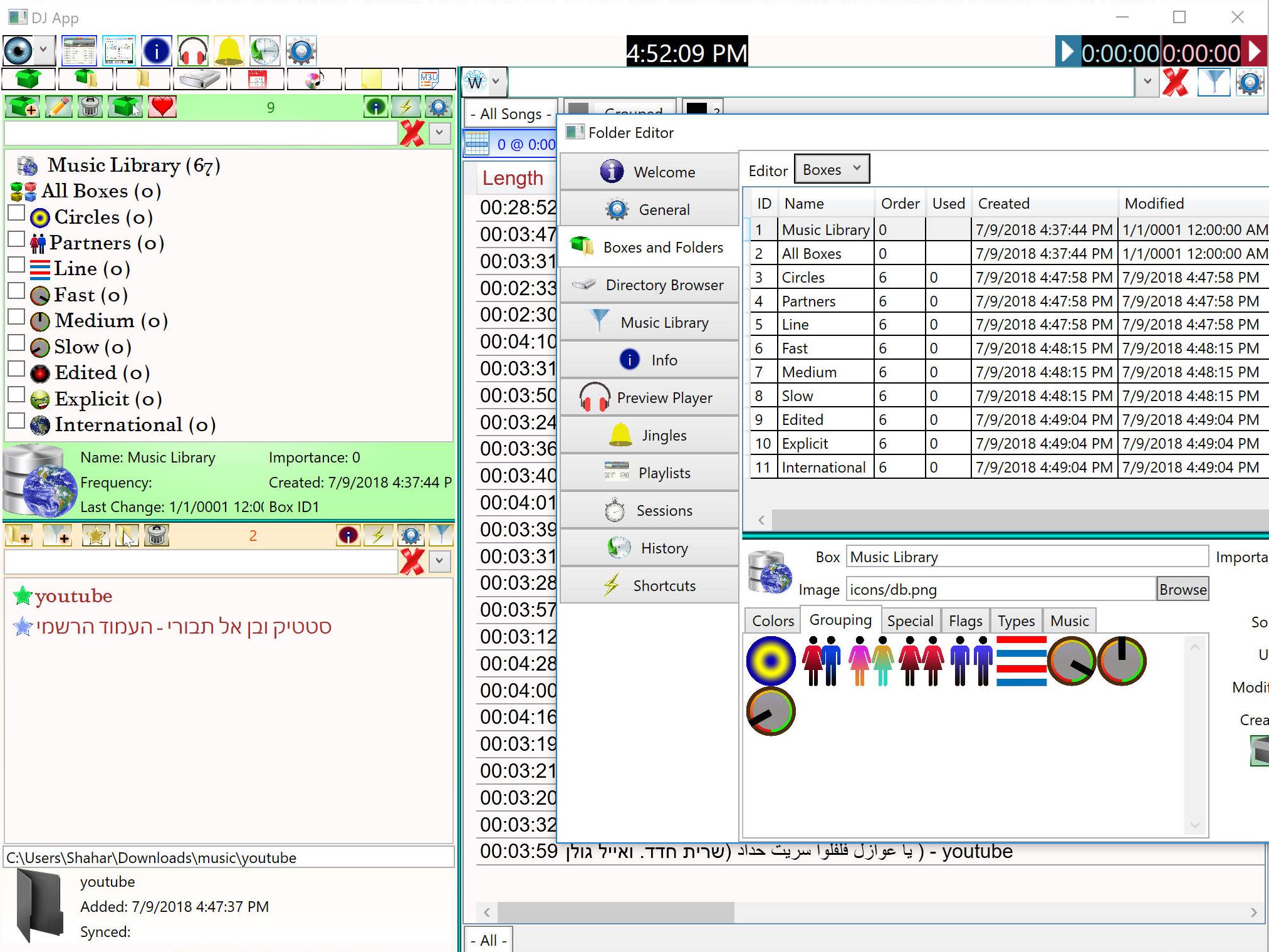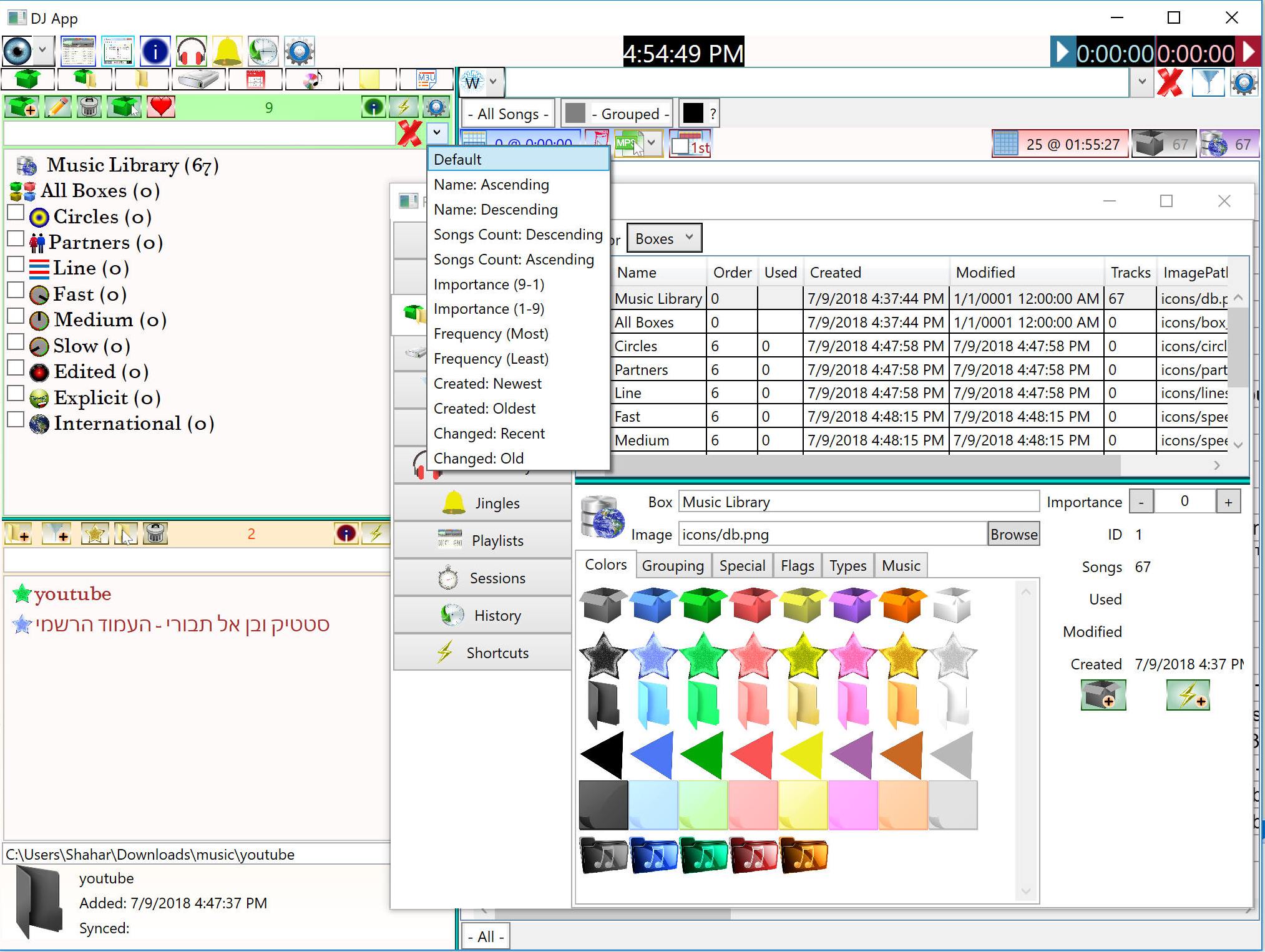 | Boxes | Create boxes and add music to the boxes. -Change Box properties such as Name, Icon, Importance, and Color. -Create unlimited boxes in unlimited Collections and add same/different songs to any box 1 by 1 or in bulk. -Search boxes by name. -Sort boxes by name, number of songs, usage frequency, importance, and more. - Multi select boxes to show all songs in all boxes selected - Use Boxes as filters to show songs that exist in all checked boxes - Heart Box(es) to rapidly add songs to several boxes at once. - Merge Boxes together or duplicate them. Folders. (Computer system folders) -Change Folder properties such as Icon, short name and Importance. - Auto Sync Folders to Library. -Search by name. -Sort Folders by name, usage, importance, and more. -Select a folder to auto browse to directory in Directory Browser.